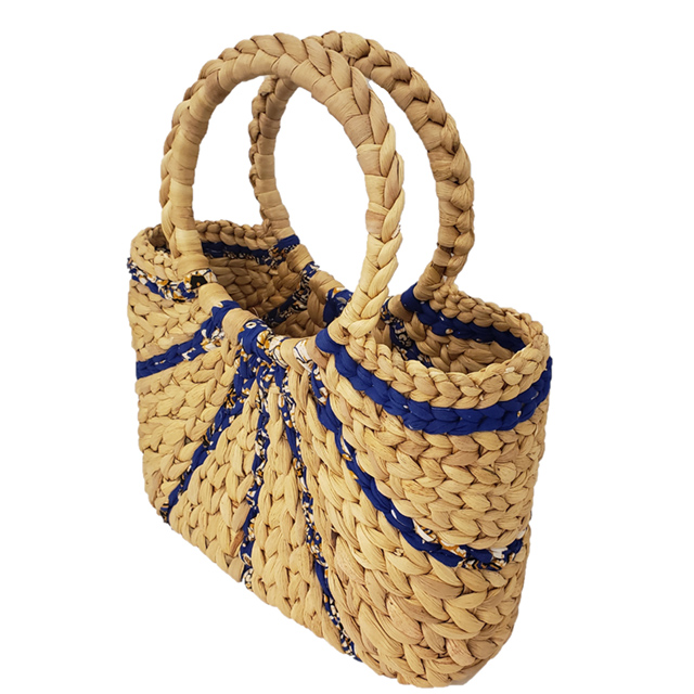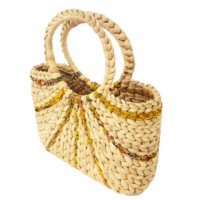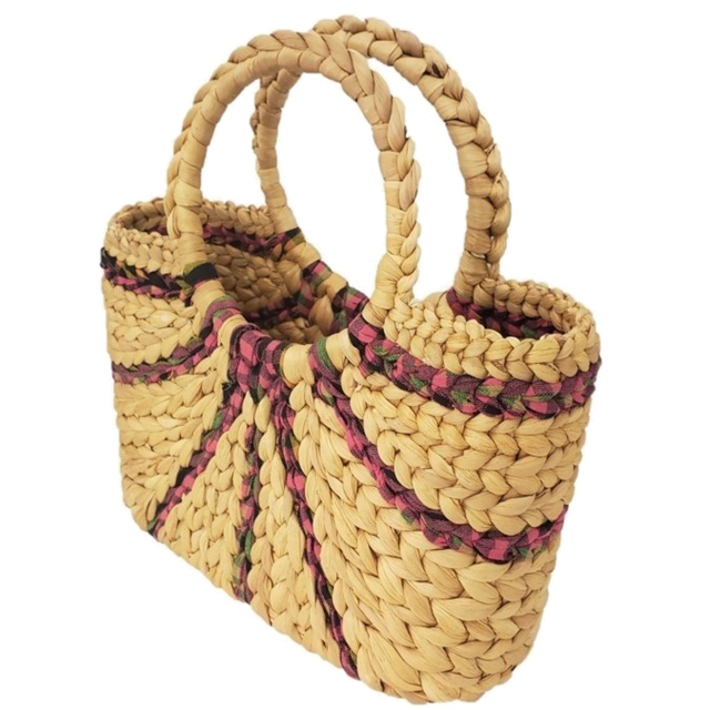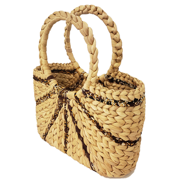 カンボジアの貧困に苦しむ女性たちが寺子屋で身に着けた技術でつくるホテイアオイバッグに倉木麻衣がセレクトした現地の布地を織り込んだオリジナル商品です。