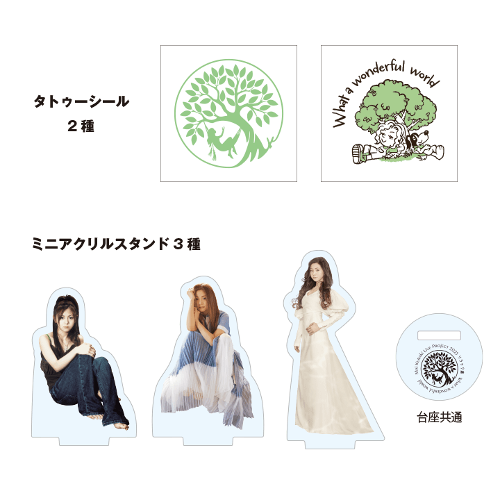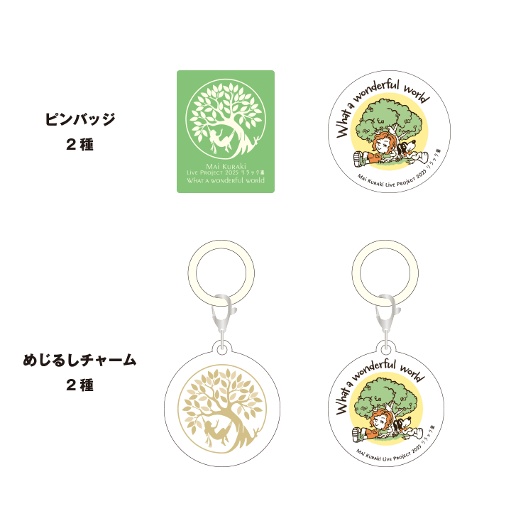 【素材】・ピンバッジ:鉄 ・めじるしチャーム:アクリル、シリコン、鉄 ・タトゥーシール:紙 ・ミニタオル:ポリエステル ・ミニアクリルスタンド:アクリル